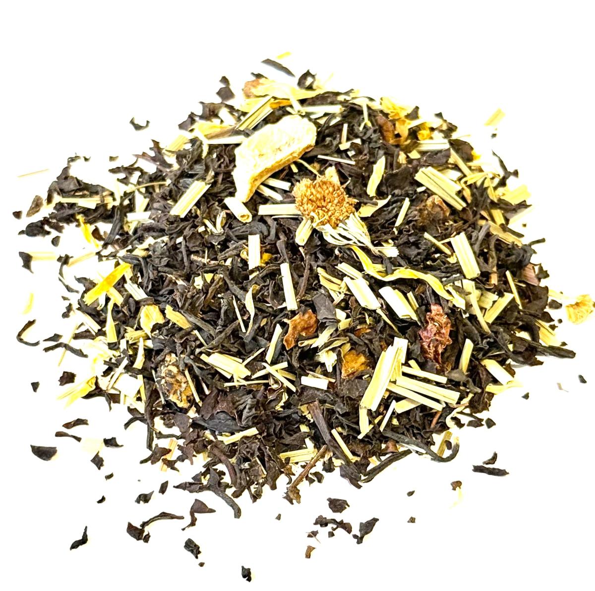 | Très beau thé noir Assam Bio d'Inde du Sud saveur ananas-citron vert avec Thé noir Assam*, -Inde du Sud*, citronnelle*, pomme*, arôme naturel de mangue, gingembre*, papaye*, morceaux de mangue*, fleurs de souci*, griotte*, ananas*, arôme naturel de citron, Huile essentielle de citron vert*. *Issu de l‘agriculture biologique et qui évoque les parfum de l'île de La Réunion et de la ville Entre-Deux. Les thés et infusions de chez Bouqu'infusions sont en feuilles et en fruits non hachés ou mixés ce qui implique de les faire infuser dans des volumes qui permettent aux feuilles de s'ouvrir et aux fruits de s'exprimer. Nous vous recommandons donc d'utiliser des théières avec filtre inox incorporé ou des filtres papier Bio dégradables et compostables vendus ici dans la rubrique "Théières et accessoires". Pour que votre infusion vous soit le plus agréable nous vous recommandons de respecter les conseils de volume au litre, de température d'eau et de temps d'infusion qui sont notés sur les étiquettes de sachets et de boîtes. |